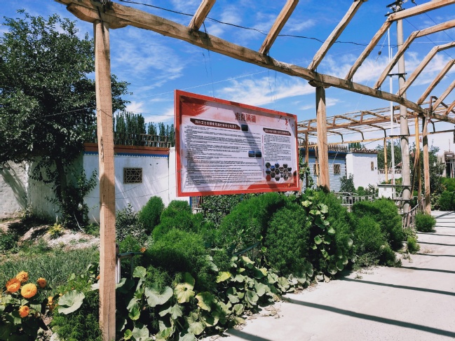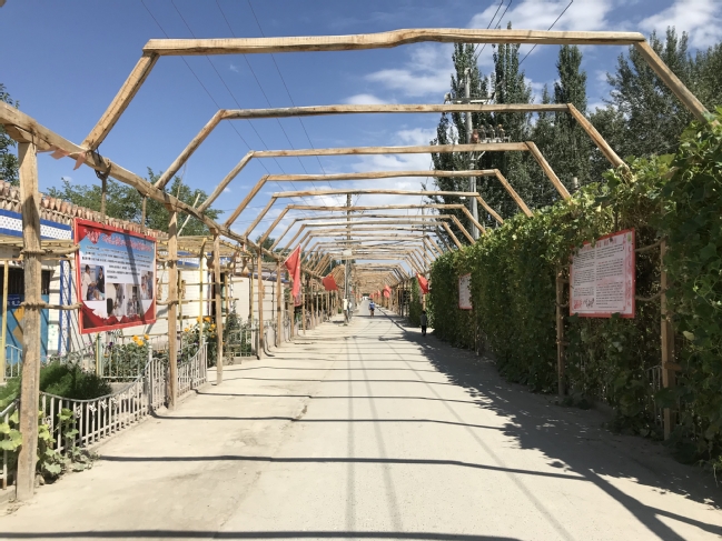 “自己家房前道路都搭上了葡萄架,空格处挂上了总书记故事园和各类惠民宣传展板,不仅自己及家人受到了文化教育,还能够增加经济收入。”村民艾麦尔·先木西站在葡萄架下,脸上写满了致富的希望,眼神更加明亮了。