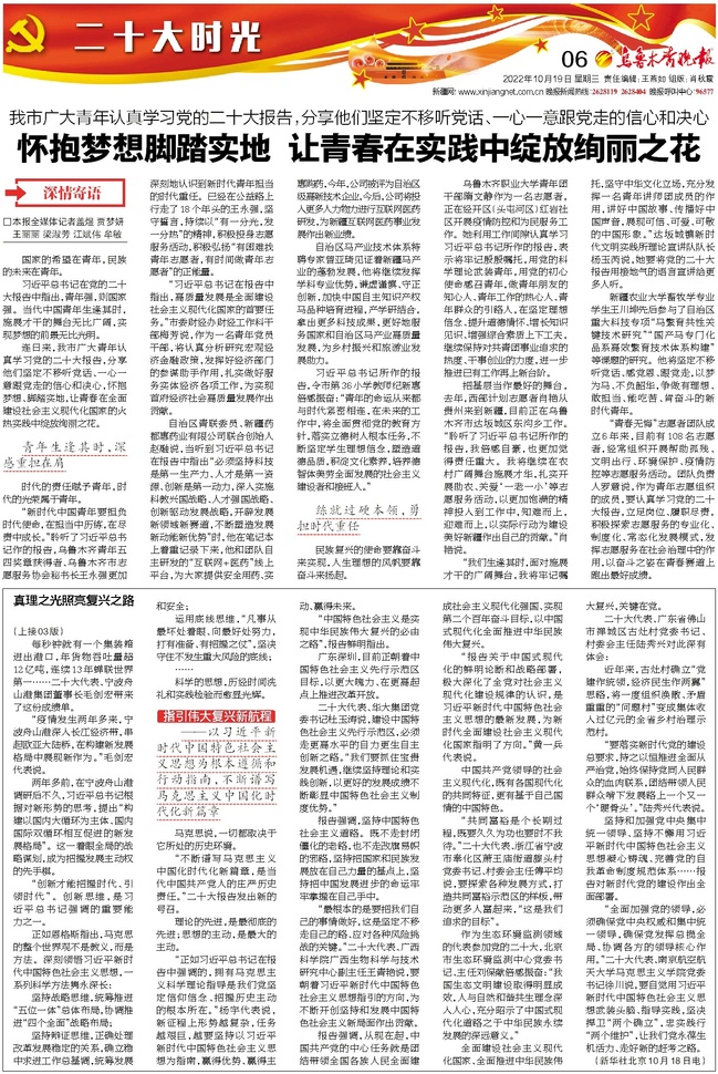 【聚焦二十大 乌鲁木齐晚报】怀抱梦想脚踏实地 让青春在实践中绽放绚丽之花