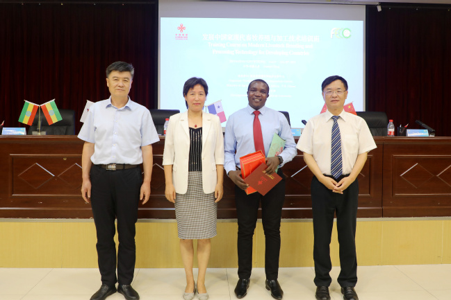 7月20日下午,“发展中国家现代畜牧养殖与加工技术培训班”结业典礼在新疆农业大学举办,农业农村部对外经济合作中心副主任蔺惠芳,自治区农业农村机械化发展中心党委书记、副主任/一级巡视员谢国政,新疆农业大学校长蒋平安等出席了结业典礼,农业农村部对外经济合作中心培训处副处长彭勃文主持活动。