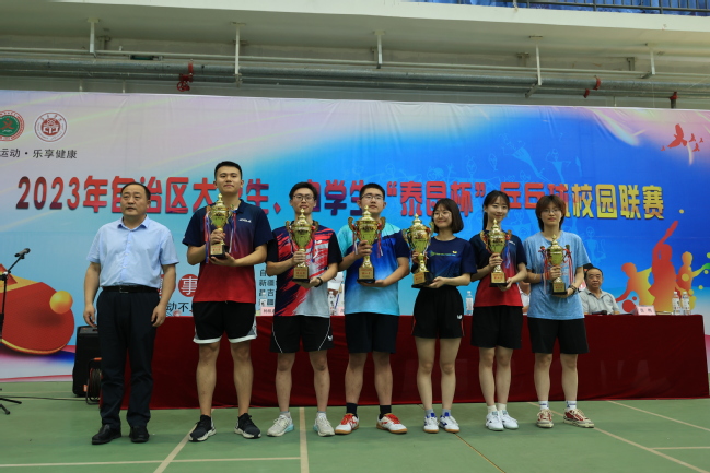 7月16日至19日,由自治区教育厅主办的2023年自治区大学生、中学生“泰昆杯”乒乓球联赛在昌吉学院举行,新疆农业大学派出12名师生参赛。