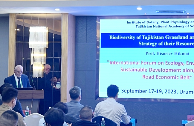 塔吉克斯坦国家科学院院士黑克马特·黑索里耶夫在《塔吉克斯坦草原生物多样性及其保护策略》报告中向与会嘉宾介绍了本国草原生物系统现状及保护措施。他表示,塔吉克斯坦植物生长、自然环境与中国新疆相似,希望通过本次交流进一步了解中国在干旱区草业发展方面的经验与成果,整合双方资源、科研优势,开展干旱区草业可持续发展相关领域的合作。