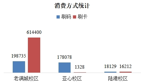 8月25日,新农大智慧校园卡系统正式上线!新系统采用了虚拟卡为主,实体卡为辅的运行模式,通过移动端即可一站式完成食堂消费、充值缴费、账单查询和浴室预约等各种服务,为广大师生带来了更加便捷的校园生活体验。截止9月20日各校区消费方式统计如图所示。