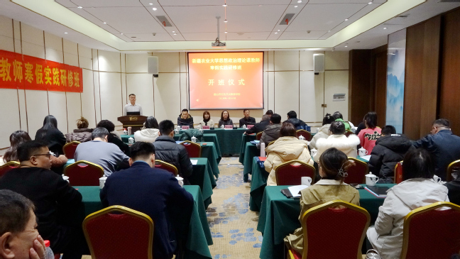 1月16日上午,实践研修开班仪式举行。张小楠、韶山市红色文化教育学校校长毛雨时、新疆农业大学马克思主义学院副院长蒲丽霞,以及参加研修的全体老师参加开班仪式。
