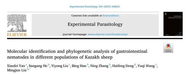 Abstract: Gastrointestinal nematode (GIN) infection in sheep has been recognized globally as a major problem challenginganimal health and production. The objective of this study is to use a molecular diagnosis of the prevalence forgastrointestinal nematode (GIN) dominant species of Kazakh sheep and its hybrid (Kazakh × Texel). The internatranscribed spacer 2 (ITS-2) sequences of ribosomal DNA (rDNA) were used as the target sequence. In the studythree dominant species of nematodes, namely Haemonchus contortus, Trichostrongylus spp., and Teladorsagia(Ostertagia) circumcincta from the Kazakh sheep and the F1 and F2 generations of Texel × Kazakh sheep hybridswere subjected to molecular identification and phylogenetic analysis. The fecal and single larva genomic DNA were extracted and amplifed by PCR using specific primers to determine the infection rate of the three nematodespecies. In addition, the PCR products were sequenced and analyzed using bioinformatics methods to construct aphylogenetic tree. The results showed that all the three species had their ITS-2 specific amplified. According tothe sequence homology analysis of PCR products, the results showed a high homology (above 98.5% homology) with H. contortus, Trichostrongylus spp., T. circumcinctaITS-2 sequences in GenBank, Phylogenetic analysisshowed that the ITS-2 sequences of the three species were on the same branch as the ITS-2 sequences of the samespecies in NCBI. And on different branches from those of the ITS-2 sequences of different families, genera and species. Sequences carried out on three species from different samples showed a close relationship and littlegenetic difference in phylogenetic tree. The infection rates based on fecal DNA were 35.59, 25.55, and 11.24% for H. contortus, Trichostrongylus spp., and T. circumcincta, respectively. While the infection rates based on larvaDNA, were 24.07, 18.89, and 13.26% for H, contortus, Trichostrongylus spp., and T. circumcincta, respectively. Theseasonal prevalence of the three dominant species in spring was significantly higher than that in autumn andwinter. And there was no significant difference between Kazakh, Fl and F2 sheep considering the infection rateof the studied three species of nematodes, This study provides valuable molecular approaches for epidemiological surveillance and for assisting in the control of Nematodirus infection in sheep.