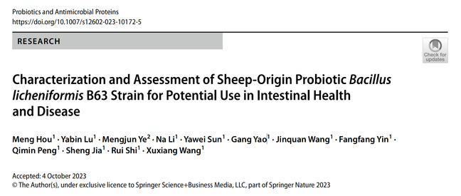 Keywords: Sheep · Bacillus licheniformis B63 · Probiotic · Bacterial diarrhea