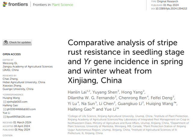 Keywords: wheat variety, disease resistance, molecular detection, Puccinia striiformis f. sp.tritici, Xinjiang