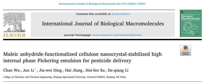 Keywords: Pesticide delivery, High internal phase Pickering emulsion, Cellulose