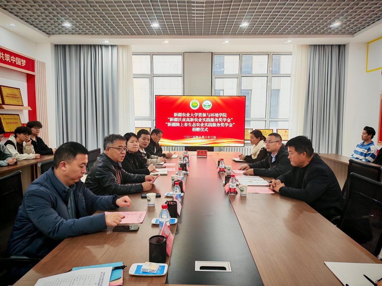 10月23日,资源与环境学院举行“新疆沃兹高新农业实践服务奖学金”与“新疆陇上春生态农业科技实践服务奖学金”捐赠仪式。新疆沃兹高新农业有限公司、新疆陇上春生态农业科技有限公司共捐赠48万元,设立两项实践服务奖学金,用于奖励和支持学院学生勤奋学习、投身实践、成长成才。