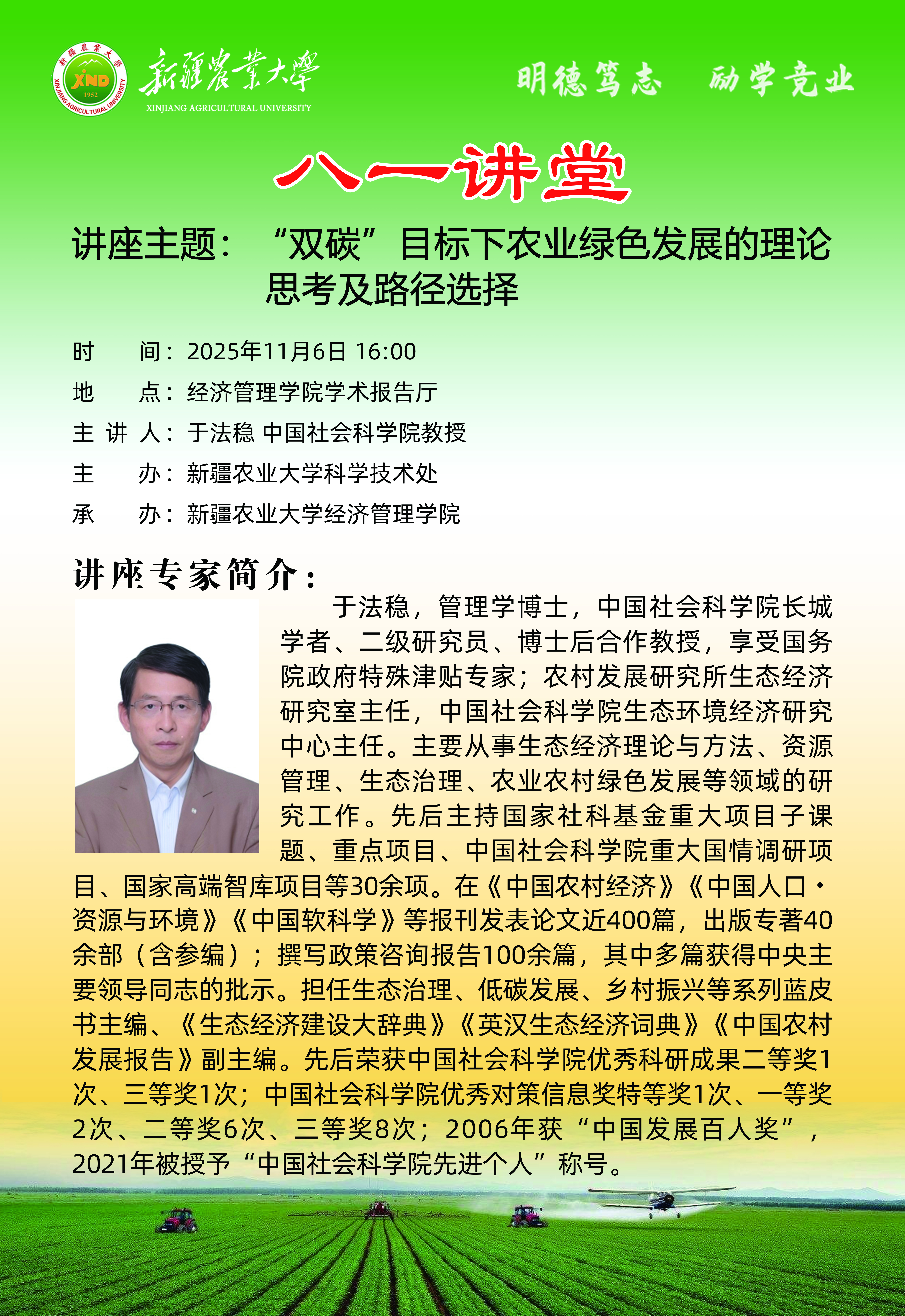【八一讲堂预告】一百零八期:“双碳”目标下农业绿色发展的理论思考及路径选择