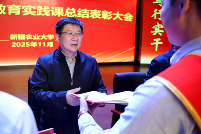 陈勇通报了2025年耕读教育实践课开展情况。今年,全校20个学院138个班级、6500余名学生与198名教师深入全疆7个地州(市)及新疆生产建设兵团部分农团场的34个耕读教育基地,围绕作物采收、食品加工、产品包装、质量安全控制等农业生产关键环节开展耕读实践。