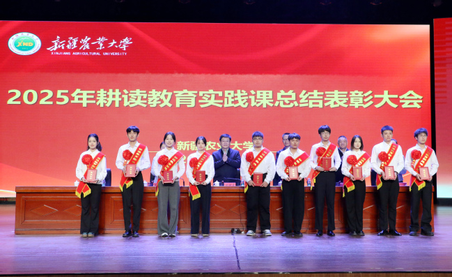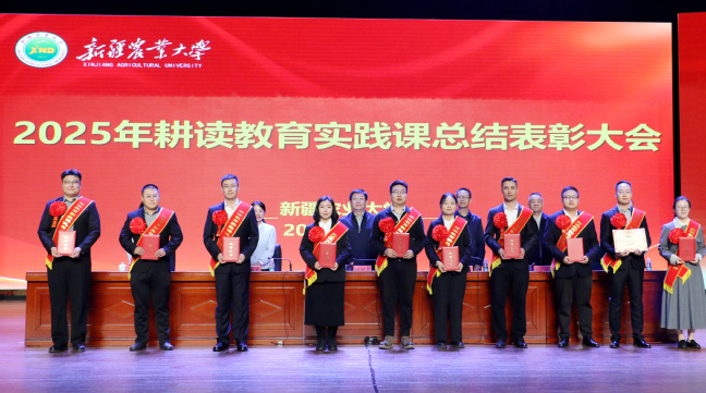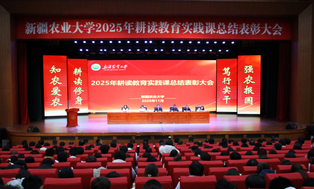 11月5日下午,新疆农业大学在八一会堂主会场召开2025年耕读教育实践课总结表彰大会,校党委书记谢树青,党委副书记、副校长董朝霞,党委常委、副校长米吉提·买买提,党委常委、纪委书记、监察专员万净敏,党委常委、宣传部部长杨红参加会议。校党委副书记陈勇主持大会。