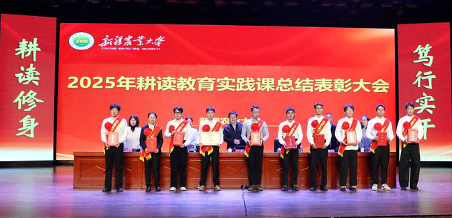 大会在2025年耕读教育实践课专题片《耕读薪传·时代新声》拉开序幕,一幕幕画面串联起学校26载的耕读岁月——从1999年首批学子奔赴田间支农,到拓展至全产业链的创新实践。
