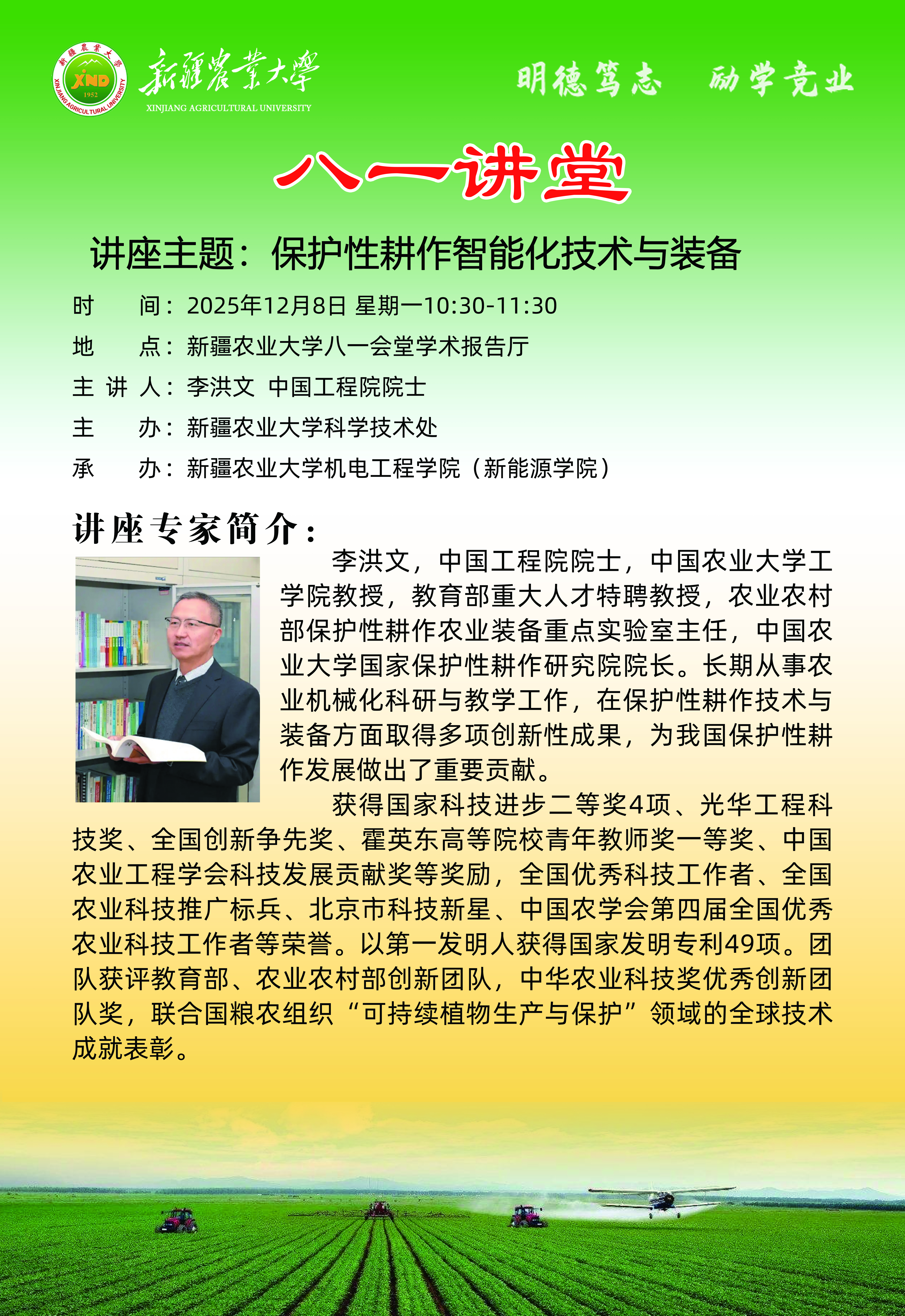 【八一讲堂预告】一百一十五期:保护性耕作智能化技术与装备