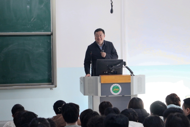 12月9日,校党委副书记、校长郑文新走进《形势与政策》课堂,为人力资源管理(国际)2401、2402班和市场营销(国际)2402班大学生专题讲授“践行多边主义,完善全球治理”。