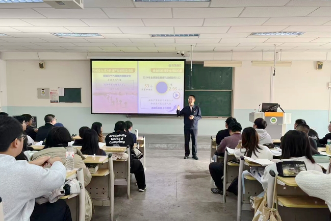 陈勇围绕变乱交织的国际形势、全球治理的国际共识、时代之问下的中国答卷三个方面展开详细阐述。陈勇以当前国际形势和国际冲突问题为切入点,对全球经济增长前景、气候变化等热点问题进行了详细讲解,用“小切口”解析“大主题”,从而引导学生认识到中国在践行多边主义和完善全球治理体系中的重要作用。