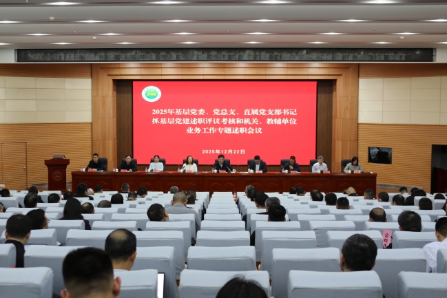 12月22日,新疆农业大学召开2025年基层党委、党总支、直属党支部书记抓基层党建述职评议考核工作会议。校党委书记谢树青出席会议并讲话,全体在家校领导、副处级及以上领导干部、机关各科室负责人、各学院党政办公室负责同志参会。会议由校党委副书记张小楠主持。