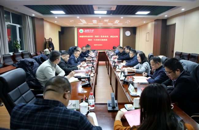 12月23日,新疆农牧业投资(集团)有限责任公司党委委员、副总经理陈林一行8人来校交流座谈,新疆农业大学党委书记谢树青主持座谈会。