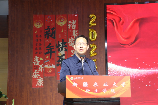 陈勇在致辞中,勉励大家如“胡杨树”般扎根边疆、如“石榴花”般绚丽绽放、如“耕读牛”般奋发向前,凝聚青春力量,担当时代使命。现场同步播放《2025新星逐梦之旅》短片,呈现来自全国各地新生的青春风采。