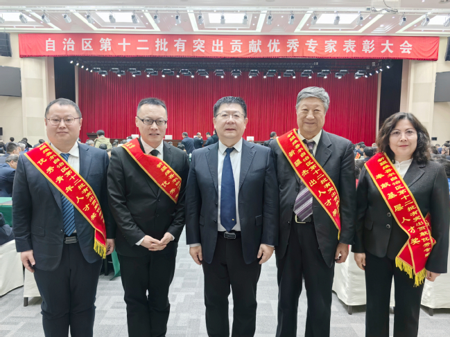 自治区第十二批有突出贡献优秀专家表彰大会1月13日在乌鲁木齐举行。我校侍克斌、马德英、布娲鹣·阿布拉、刘尊奇、吴鹏昊5位专家教授凭借在各自领域的卓越贡献,分别荣获不同奖项,为学校赢得了荣誉。