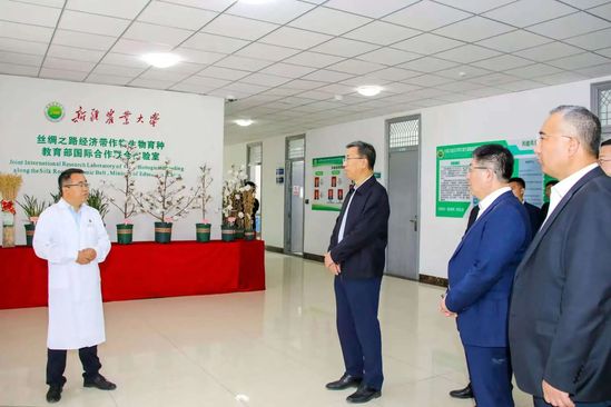 5月13日,教育部党组书记、部长怀进鹏赴新疆农业大学等学校调研指导工作。期间,怀进鹏走进我校水利与土木工程学院、农学院实验室,与实验室负责人、专家亲切交流,希望学校积极开展高层次的原创性、前瞻性和应用性研究,形成一批具有重大影响的标志性科研成果,扩大国际影响力。