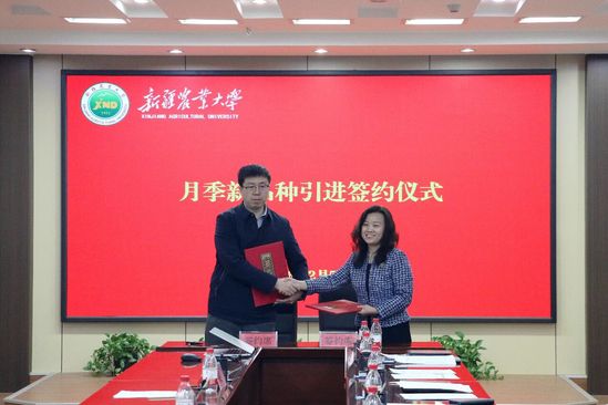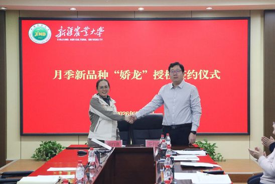 2月5日,新疆农业大学会议室内花香满室,一场特殊的签约仪式让春意提前降临。云南省农业科学院花卉研究所(以下简称“花卉所”)将自主培育的月季新品种“娇龙”,正式授权予新疆农业大学公益化使用。同时,乌鲁木齐创博国有资产投资经营(集团)有限公司与花卉所签署协议,计划每年为水磨沟区科技农业产业示范园引进20个月季新品种。