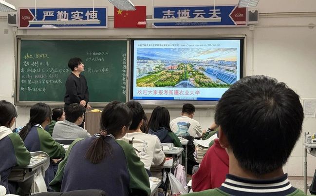 国际教育学院 交通运输(国际)2501班 邓琳子:我回到了母校开展宣讲。当PPT上“欢迎报考新疆农业大学”的字样亮起,看着台下一张张青涩又充满期待的脸庞,我忽然有些恍惚——仿佛时光倒流,我又变回了那个为了梦想挑灯夜读的少年,而此刻,我却成了他们眼中“未来的模样”。如今,我已带着母校的期许,继续在大学的道路上前行。而这段重返讲台的经历,也成了我青春里最珍贵的注脚——它提醒我,永远不要忘记自己从哪里来,也永远不要停下向未来奔跑的脚步。