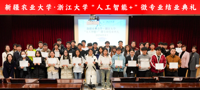 3月11日下午,新疆农业大学与浙江大学联合举办的“人工智能+”微专业首批结业典礼顺利举行。典礼采用线上线下相结合方式,主会场设在我校。校党委常委、副校长綦群高出席活动。