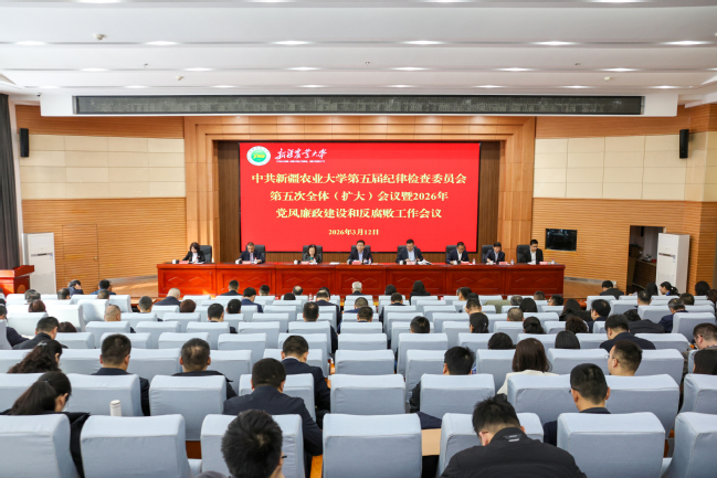 3月12日上午,中共新疆农业大学第五届纪律检查委员会第五次全体(扩大)会议暨2026年党风廉政建设和反腐败工作会议在八一会堂问学厅召开。校党委书记谢树青出席会议并讲话,校党委副书记、校长郑文新主持会议。