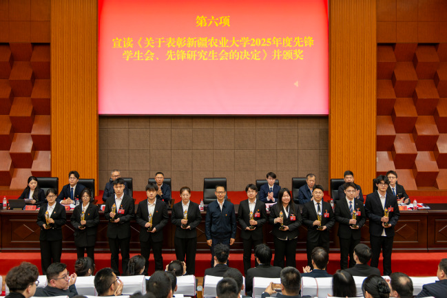 会议还宣读了《关于表彰新疆农业大学2025年度“先锋学生会”“先锋研究生会”的决定》并举行颁奖仪式。