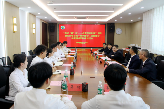 3月18日下午,校党委书记谢树青,分管学生工作的校党委副书记陈勇及校团委、研究生院负责老师,与新一届的学生会、研究生会成员围坐一起。一场关于青春、责任与学校大小事的面对面交流,在轻松的氛围中展开。