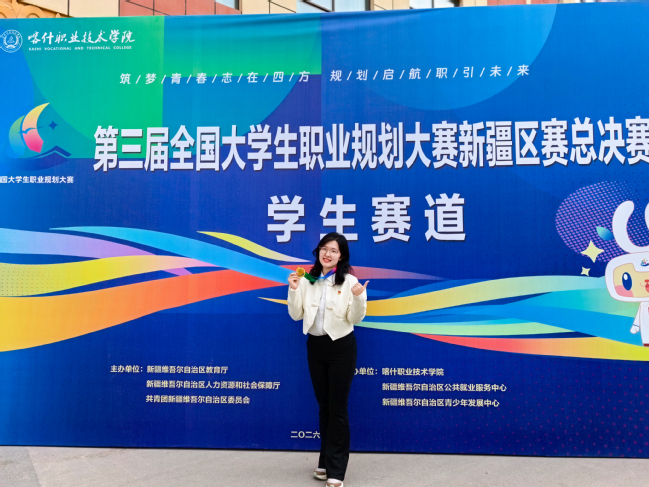 3月19日,第三届全国大学生职业规划大赛新疆区赛总决赛暨颁奖仪式在喀什职业技术学院落幕。我校5名学子与全疆40所高校的260余名选手同台竞技,凭借扎实的专业素养、清晰的职业定位和出色的临场发挥,最终斩获金奖1项、银奖1项、铜奖3项。