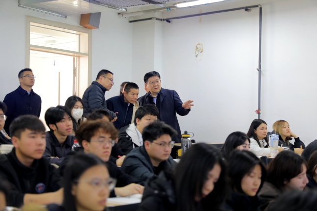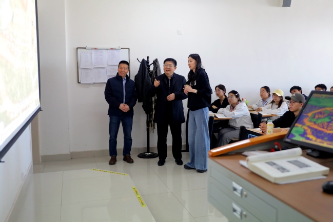 随后,谢树青随机听取了多个课堂的现场教学。在《高等数学》课堂上,他认真观察蔡学鹏老师的授课方式与学生的听课状态;在《有机化学》课堂,他详细了解了课程设计、信息化教学手段的应用情况以及多媒体设备、智慧黑板等硬件设施的辅助效果;在《中华民族共同体概论》课堂上,他与朱钰婷老师深入交流,对课程如何更好地将宏大叙事与学生生活相结合提出了指导性意见。