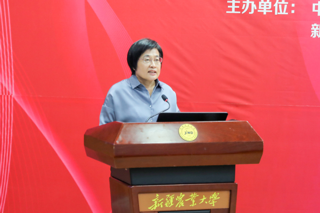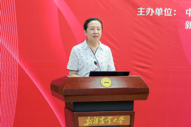 6月27日,第二十届新疆社会科学界学术年会“全面推进乡村振兴 加快新疆农业强区建设”学术专场在新疆农业大学举行。自治区社科联党组书记、副主席卢春萍,新疆农业大学党委书记谢树青出席会议并致辞。自治区社科联二级巡视员钟广新宣读入选“全面推进乡村振兴 加快新疆农业强区建设”学术专场论文名单。新疆农业大学党委副书记、马克思主义学院院长张小楠主持会议。