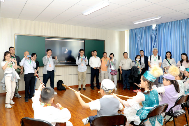 签署协议前,香港华夏教育机构新疆考察交流团一行在蒋平安的陪同下先后参观了新疆农业大学校史馆和附属中学,欣赏了中小学生们精心准备的精彩的民族舞蹈和武术表演,走进小学部音乐室、绘画室、书法室、手工制作室观看学生艺术课展示,走进中学部航模活动室、击剑馆特色活动场所,观看学生精彩创意展示,与师生互动交流。