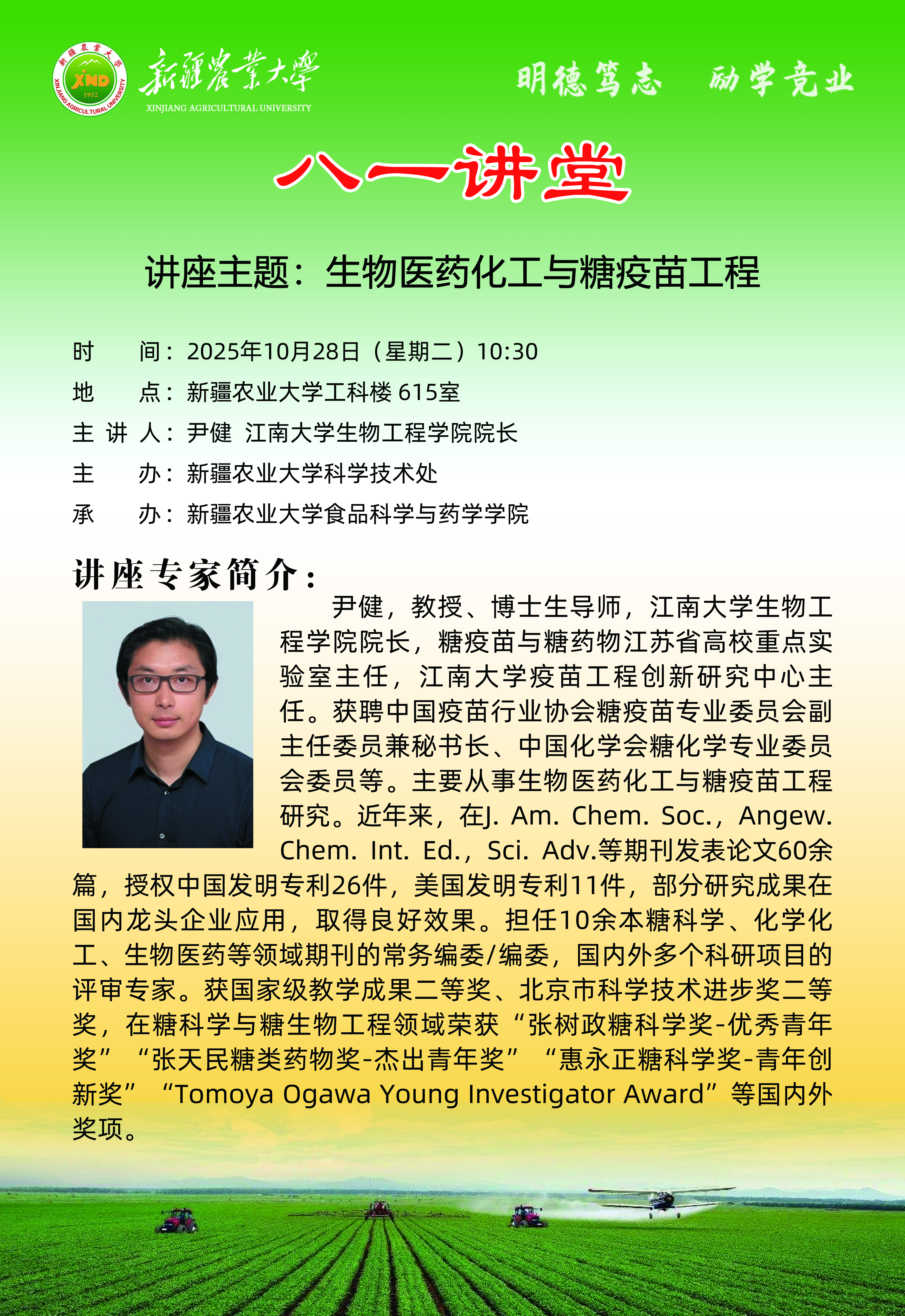 【八一讲堂预告】一百零四期:生物医药化工与糖疫苗工程