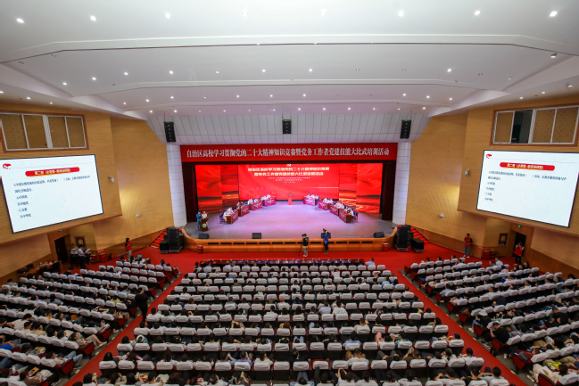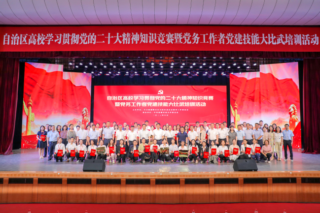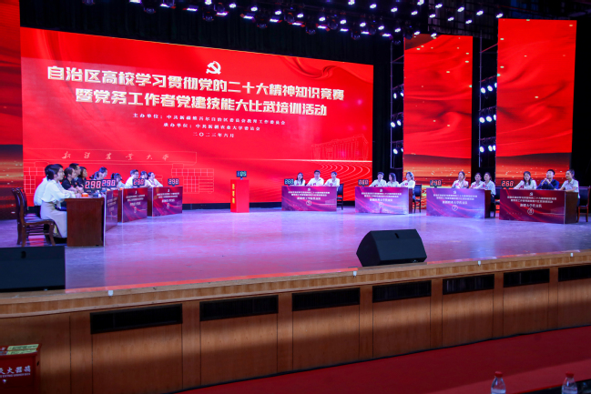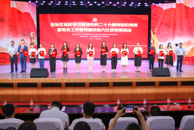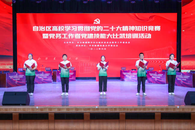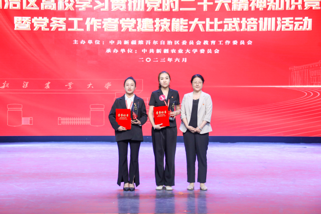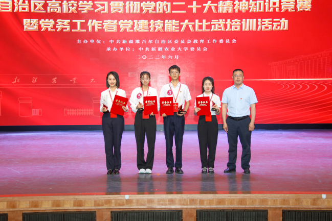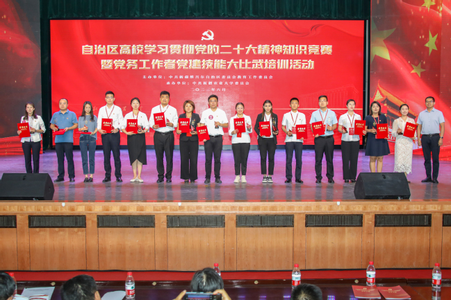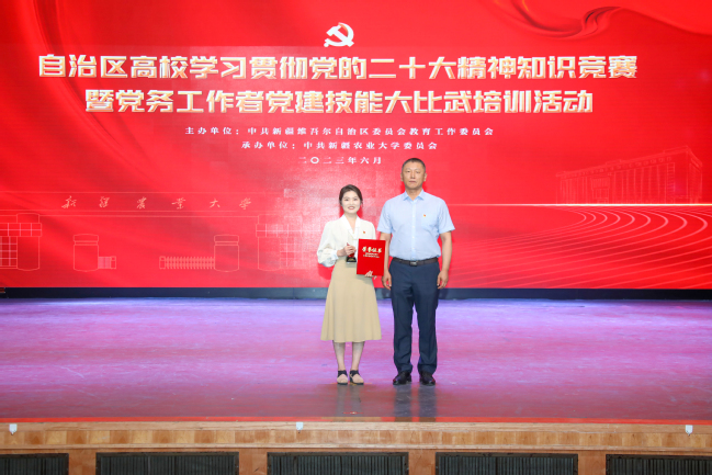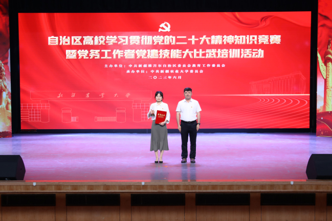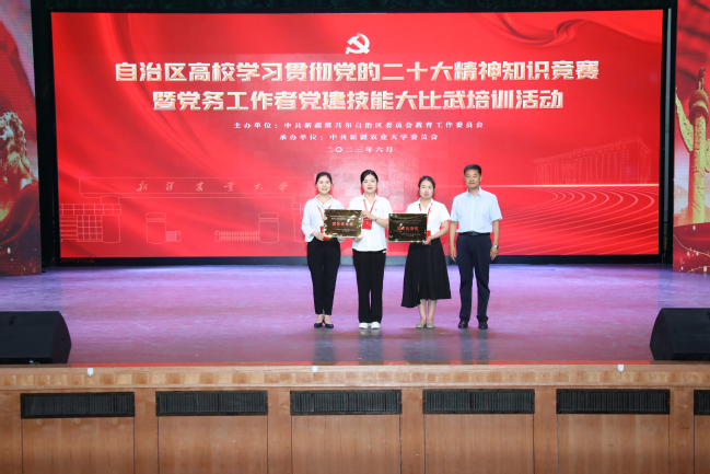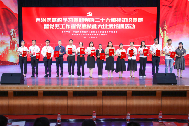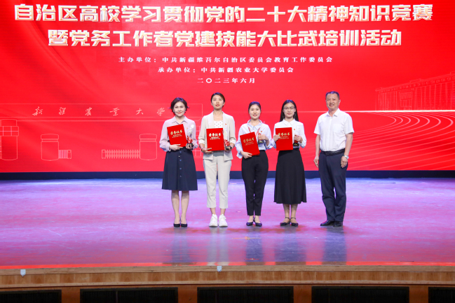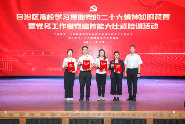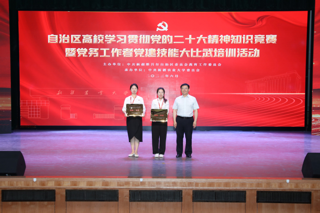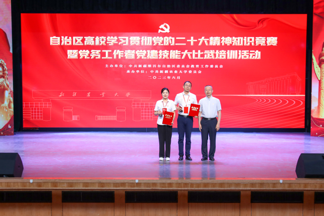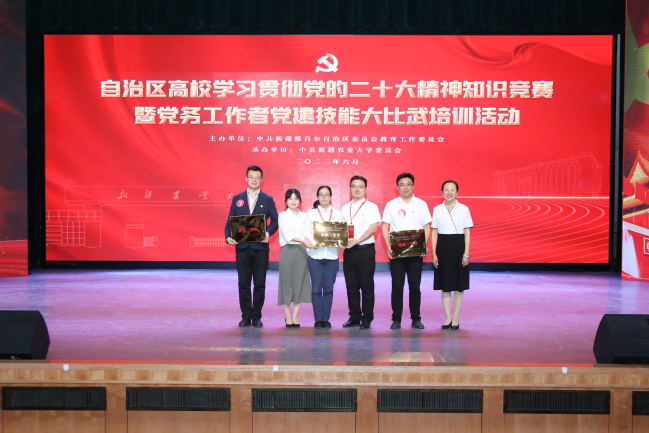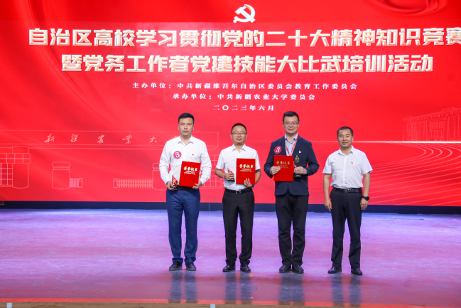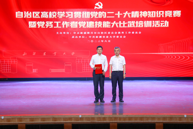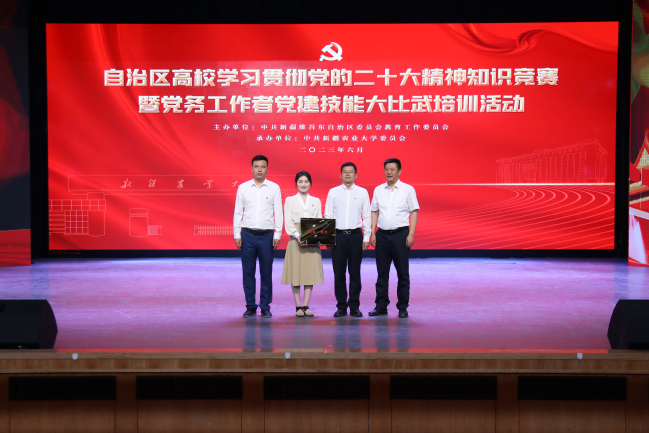 6月27日,由自治区党委教育工委主办、新疆农业大学承办的自治区高校学习贯彻党的二十大精神知识竞赛暨党务工作者党建技能大比武培训活动在我校举办。来自全疆22所高校、66名党务工作者经过二十大精神知识测试、微党课、谈心谈话以及主题党日策划等环节的激烈角逐,最终评选出优胜者。自治区党委教育工委副书记张士民、新疆农业大学党委书记谢树青莅临现场指导比赛并为获奖选手和高校团队颁奖,自治区各高校相关负责人参加活动。