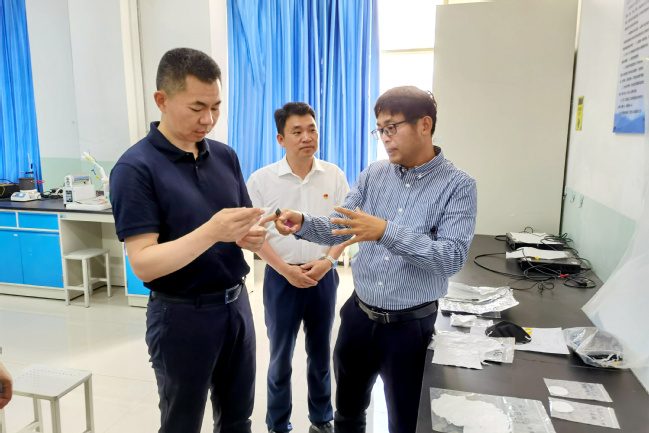 在新疆理工学院党委副书记谭刚陪同下,张硕一行走访调研了新疆理工学院特种纺织超细无机纤维材料实验室、“一站式”社区中心、教师发展中心、大数据中心、反诈教育中心、众创空间,双方边走边交流,深入交流了学生管理工作的经验做法。