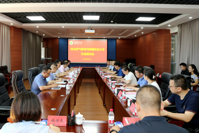 7月13日上午,自治区气象局副局长、研究员何清一行6人应邀来校,就局校科教融合、人才培养及技术推广等与新疆农业大学开展座谈交流。校党委常委、宣传部部长杨红,学校相关职能部门和学院的负责人参加座谈会。校长蒋平安主持会议。