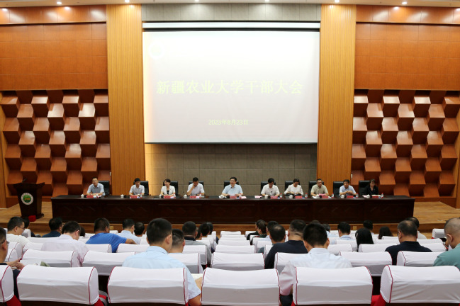 8月23日下午,新疆农业大学在图书馆学术报告厅召开干部大会,总结梳理暑期工作,安排部署秋季学期各项工作。全体在家校领导,副处级以上领导干部参加会议。校党委书记谢树青主持会议并讲话,校长蒋平安布置新学期工作。