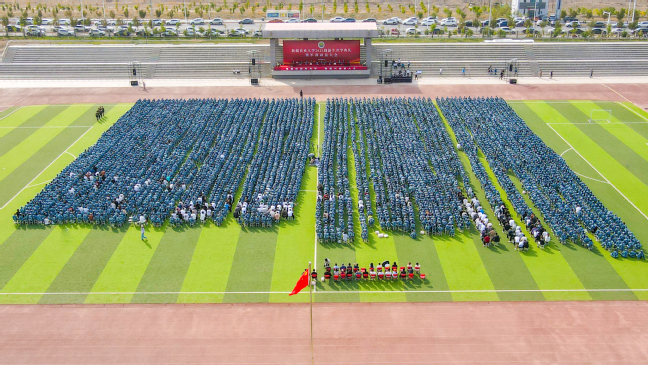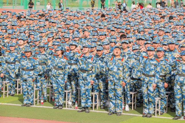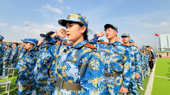 校党委常委、统战部部长高志涛宣读2023年新生军训组织机构任命。谢树青向军训团授旗,在接下来的14天里,同学们将通过艰苦地训练,磨炼意志品质,养成良好的学风和生活作风,快速适应大学生活。
