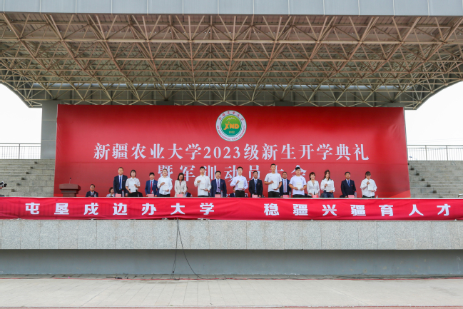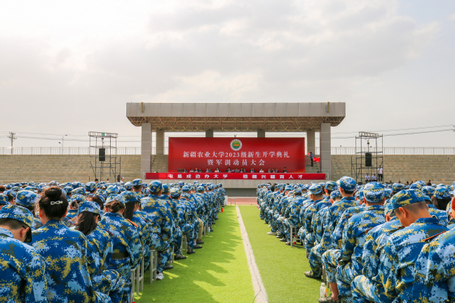 天舒朗,果飘香。2023级新生们,怀揣梦想汇聚农大校园、圆梦农大人。9月12日下午,新疆农业大学举行2023级新生开学典礼暨军训动员大会,9059名本科生、研究生走进农大校园,在这里起航梦想。校党委书记谢树青教授为新生讲授开学第一课,校长蒋平安教授主持开学典礼。