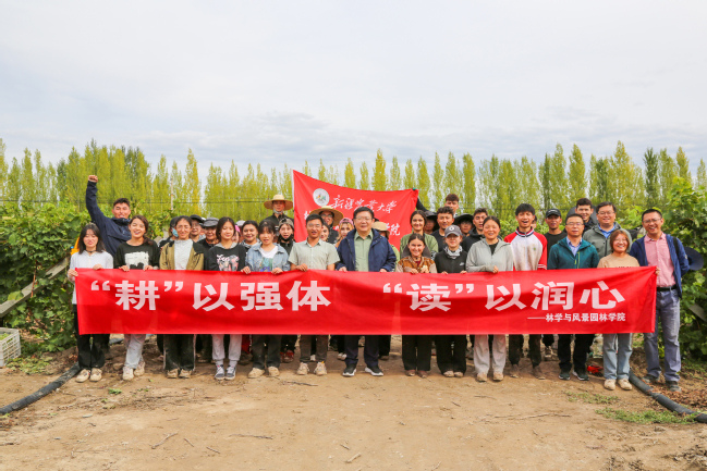 谢树青一行来到农八师石河子总场四分场林学与风景园林学院劳动实践点,看到被露水打湿衣袖、泥土沾满裤管,却依然情绪饱满的同学们,感叹道:“同学们通过劳动实践,感受古人‘犁锄负在肩,牛角书一束’的怡然自得的耕读之风,体悟‘日入开我卷,日出把我锄’的乡土耕读情感,体现了我们农大人厚植爱农情怀、练就兴农本领的行动自觉和基因传承。”
