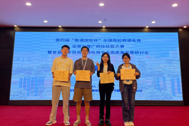 9月24日,为期3天的第四届“数通国软杯”全国高校跨境电商运营与推广岗位技能大赛在山东青岛落幕。在新疆农业大学国际教育学院张文强、艾孜哈尔·多里坤两位指导老师的带领下,由会计204班马昕瑜、会计202班孙彤、国贸204班姜辰昊、人资2101班秦志伟组成的比赛队伍在激烈的角逐中获得了本科组团体一等奖的好成绩,孙彤、姜辰昊荣获本科组个人三等奖,指导老师张文强和艾孜哈尔·多里坤荣获优秀指导老师荣誉称号。