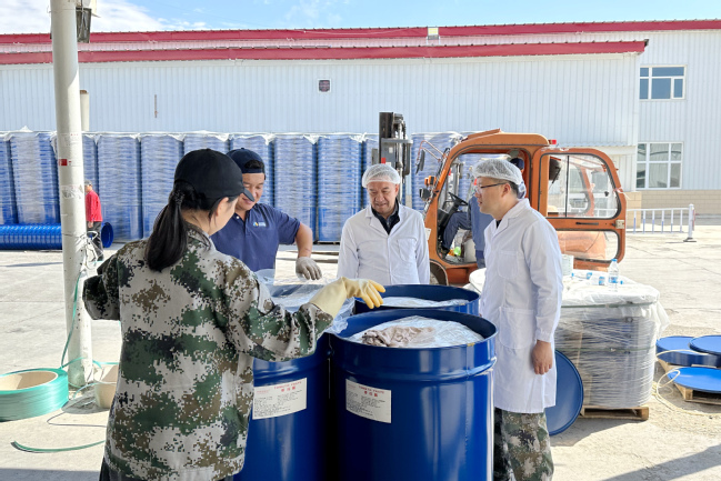 座谈会结束后,米吉提·买买提换上工作服,走进车间,与各个岗位的同学的交流谈心、了解同学名在劳动教育中遇到的困难和问题。在宿舍门前,与同学们合影,并将学校带来的慰问品逐个发放到学生手里。鼓励同学们,厚植知农爱农为农的情怀,利用耕读教育劳动实践机会,了解中国乡村,走进农民生活,领会中国乡村文化,厚植乡土情怀,建构心系人民价值观念,利用所学知识利用好水资源,以实际行动推进农业农村现代化建设。米吉提·买买提叮嘱带队干部教师,一定要将同学们的健康、安全放在第一位,积极做好服务和后勤保障,确保耕读劳动教育课顺利开展。