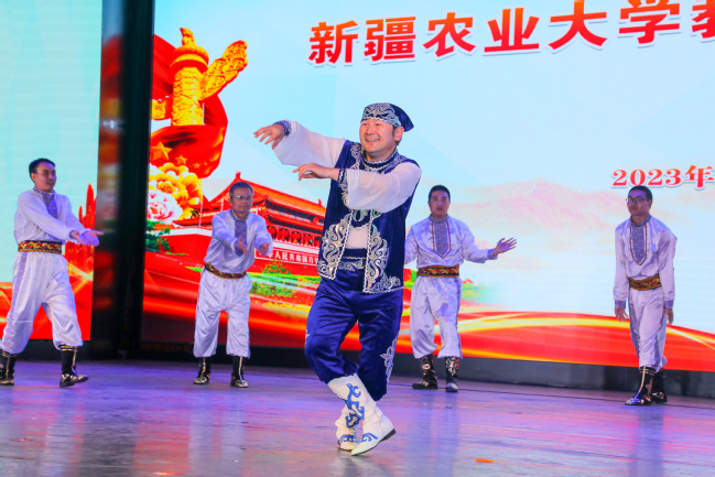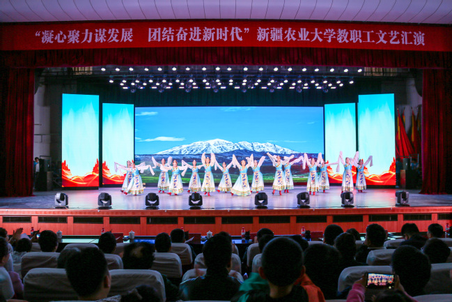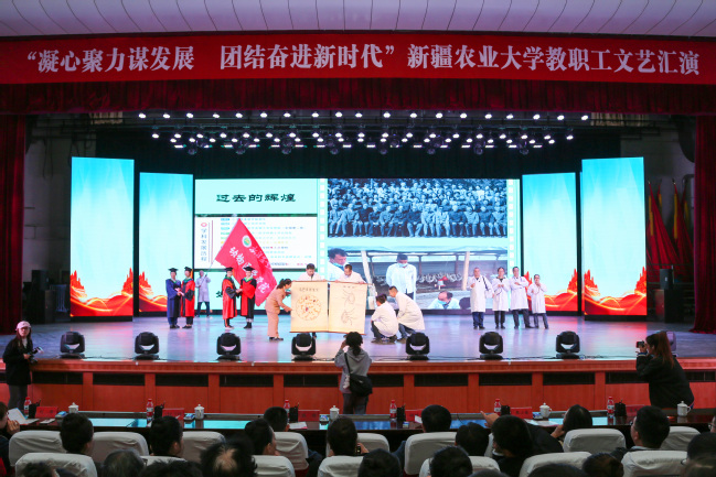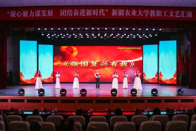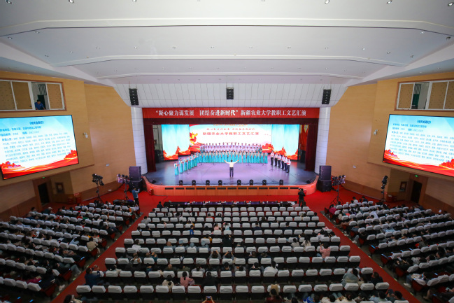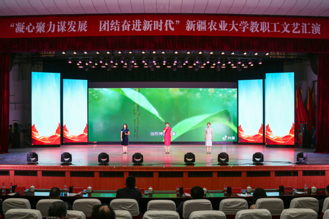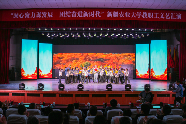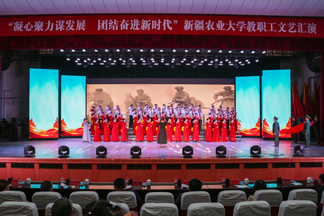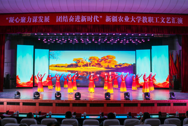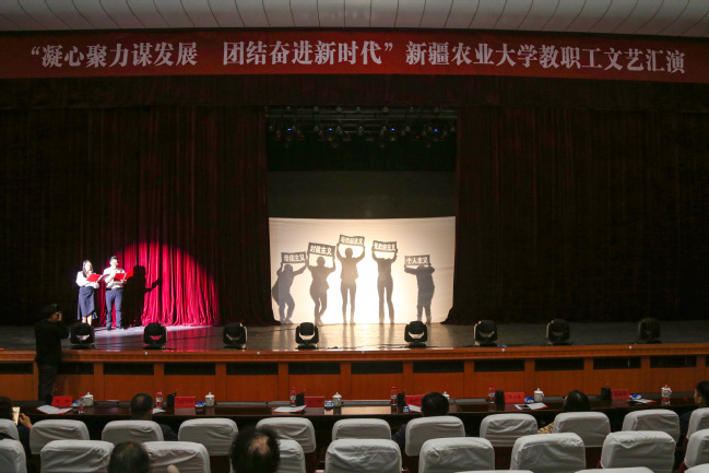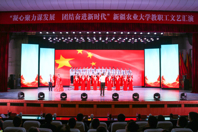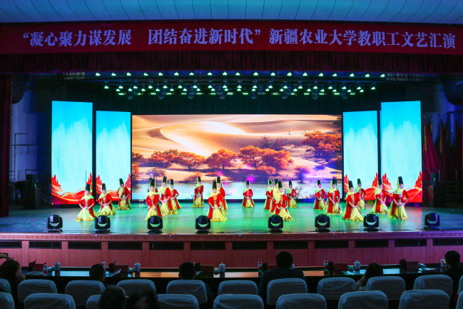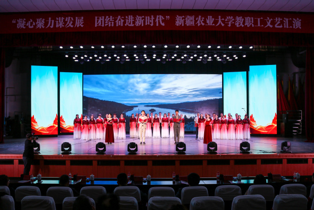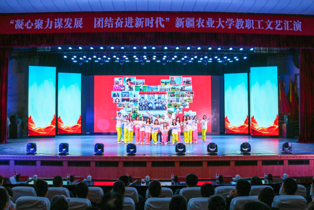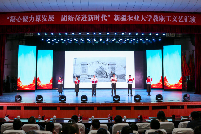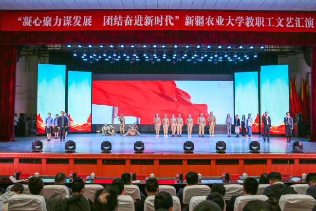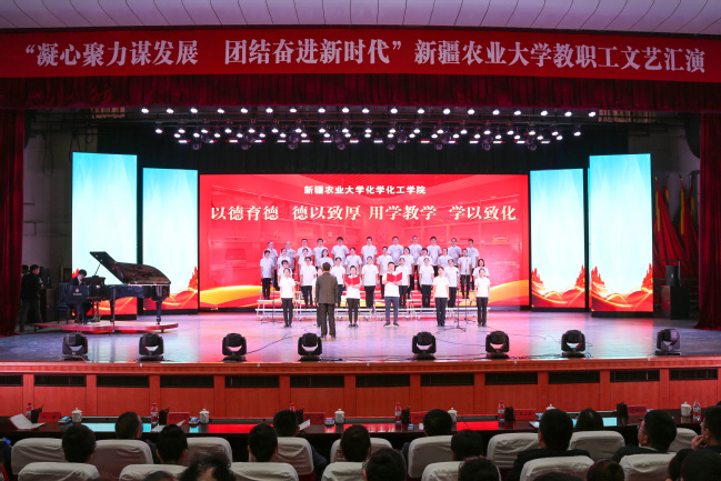 文艺汇演分“凝心聚力谋发展”和“团结奋进新时代”两个篇章。干部教工身着统一服装,依次登台、精神抖擞,倾情献唱,深情演绎。一首首耳熟能详的歌曲,一段段快乐优美的舞姿,一句句饱含深情的朗诵,抒发了广大教职工对党、对祖国、对新疆、对农大的热爱之情,现场观众深受感染,会场不时响起热烈掌声。