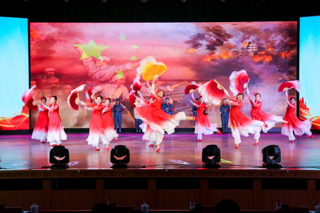 后勤服务处舞蹈《盘子舞》,展示后勤人用温馨细致的行动来诠释对农大师生的爱与守望。
