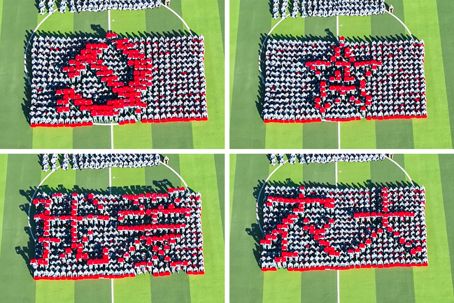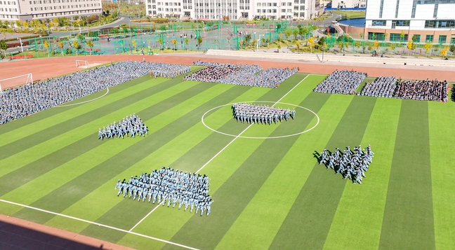 学子们配合默契摆出不同图案