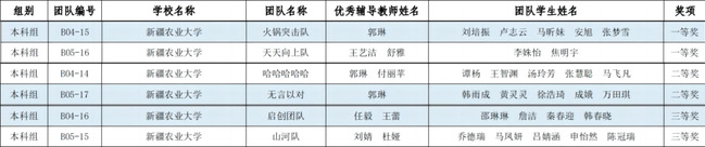 10月15日,2023年全国高校商业精英挑战赛创新创业竞赛“精创教育杯”创业模拟赛道全国总决赛(第一阶段)结果公布,新疆农业大学荣获本科组6个奖项,经济管理学院“火锅突击队”、“天天向上队”两支队伍获全国总决赛一等奖,“无言以对”、“哈哈哈哈哈”2支队伍获全国总决赛二等奖,“山河队”和公共管理学院(法学院)“启创团队”获全国总决赛三等奖。