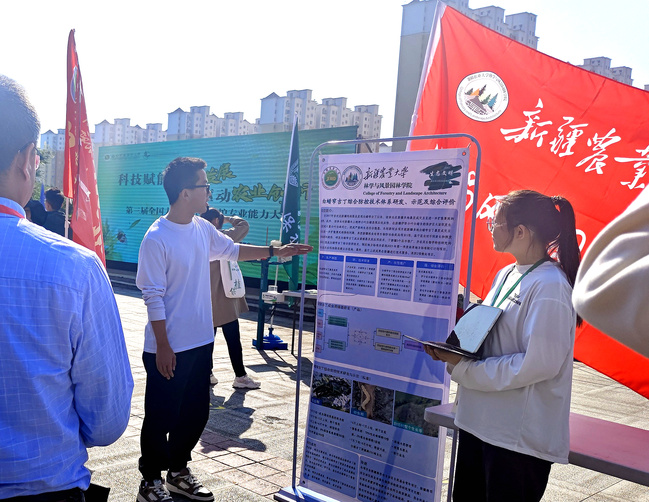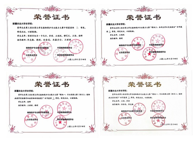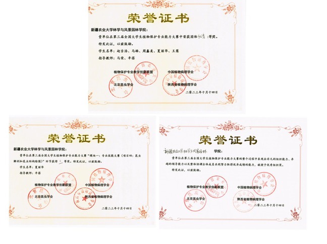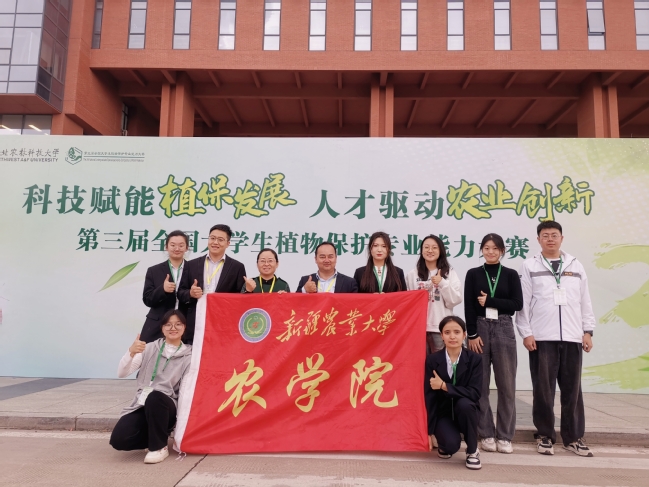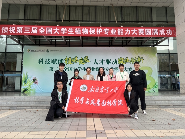 第三届全国大学生植物保护专业能力大赛于10月13至15日在西北农林科技大学举行,此次大赛以“科技赋能植保发展,人才驱动农业创新”为主题,共设置四个模块,大赛由植物保护专业教学创新联盟、中国植物病理学会、北京昆虫学会和陕西省植物病理学会共同主办,西北农林科技大学植物保护学院承办,来自全国44所涉农高校的千余名师生参加大赛。新疆农业大学农学院参赛代表队由任金龙、王丽丽、牙森·沙力老师带领6名(依丽米奴尔·卡马力、乔雪、王瑞悦、穆艺文、王浩、张野)学生参赛;林学与风景园林副院长马荣和辛蓓老师带领森保202班的5位本科生(马雄、赵吉浩、夏丽华、周鑫美、王慧)组成参赛团队参赛。