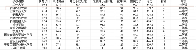 本次大赛为期两天,围绕“立势、立才、立教,共筑创新实践人才新基”主题,大赛设置了职场实战、案例分析、无领导小组讨论、劳动争议处理、实务设计等多个专业性强的特色项目,涵盖专业理论运用与软件实操双重内容。我校参赛团队从来自西北赛区的14所高校中脱颖而出,最终喜获西北赛区团体特等奖、个人特等奖3名、个人一等奖5名、个人二等奖1名的佳绩。